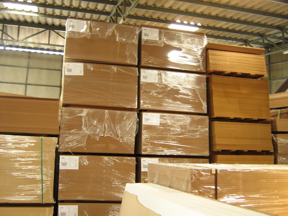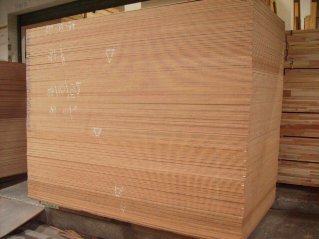 6. นำมาตัดให้ไซด์มาตรฐานคือ กว้าง 48 นิ้ว ด้านยาว 96 นิ้ว เป็นแผ่นมาตรฐานของไม้อัด